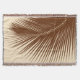 Dark chocolate brown palm leaf silhouette against a light tan / beige background