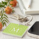 This nautical monogrammed keychain features crisp white preppy anchors on a background of bright Palm Leaf Green. Personalize the monogram with your choice of initial on the front and contact information on the back.