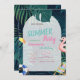 These invitations feature palm leaves with pink flamingo. This invitation is easily customised for your event by simply adding your details.