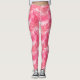 Leggings in a print of overlapping palm leaf silhouettes, in shades of deep coral pink and peach, against a pastel shell pink background