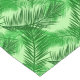 Table runner in a tropical print of overlapping palm leaf silhouettes, in shades of deep emerald green, leaf green, and lime green, against a pastel lime green background