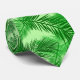 Tie in a tropical print of overlapping palm leaf silhouettes, in shades of deep emerald green, leaf green, and lime green, against a pastel lime green background