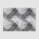 Tissue paper in a print of overlapping palm leaf silhouettes, in shades of grey / grey, black and white, against a medium grey / grey background