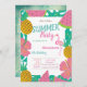 Palm Leaf,Tropical Fruits Pink Flamingo Birthday Invitation