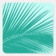 Turquoise / peacock palm leaf silhouette against a light aquamarine background