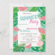 These invitations features palm leaves, waterelon, and pink flamingo. This invitation is easily customised for your event by simply adding your details.