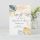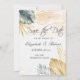 Palm leaves on watercolor splash save the date. Beautifully save the date that can be customised with your name. Select the "customise" button to change the font style, colour, and size.