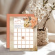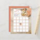 Bohemian watercolor dried terracotta hydrangeas and palm leaves floral girl "Baby Shower Bingo" design with a cute little fox nestled among the flowers on a faux sand watercolor background on front and solid terracotta on back. Composite design by Holiday Hearts Designs (rights reserved).