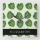 Palm Leaves, Tropical Pattern, Your Name Square Wall Clock