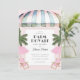Palm Royale inspired baby shower invitation. Your royale gal is having a baby and it’s time for a party in the palms! Design features palm trees, pink pool chairs and umbrellas, retro art deco hotel and more. Personalise all text for your amazing event.