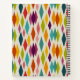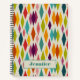 Inspired by Palm Springs Midcentury Modern design this pattern features diamond shapes in rich warm colours of teal blue, lime green, orange, sunny yellow, pink, magenta and purple set against a light cream coloured background. Show off your retro side with this notebook and its riot of colour. This spiral notebook is ready to be personalised with a name on the front cover.