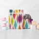 Inspired by Palm Springs Midcentury Modern design this pattern features diamond shapes in rich warm colours of teal blue, lime green, orange, sunny yellow, pink, magenta and purple set against a light cream coloured background. Show off your retro side with this wrapping paper and its riot of colour.