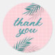 Throw a birthday party by the pool with these modern "palm springs" inspired pool party thank you stickers. It features a pink patio tile and vintage-inspired typography in teal.