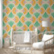 A bold, sunny mix of palm leaves and retro-inspired layout makes it suitable for both modern and vintage interiors, adding a touch of sophistication and visual interest to any space.