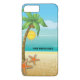 Palm tree and starfish tropical scenery iPhone 6 plus case featuring a tropical scenery: a palm tree with coconut on a sandy beach with starfish, blue sea/ocean water and the sky with the sun and clouds. It is a template and you can change your text or delete it.