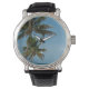 Palm tree and white sand beach watch
