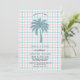 Palm Tree Azure Pink Chequered QR Code Bridal Invitation