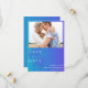 Modern wedding save the dates in a beach-inspired blue ombre palm tree design with your custom photo, perfect for your beach wedding. If you need assistance with cropping your photo or would like further customisation, contact me through my store. I'd love to help.