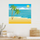 A scenic view of a palm tree beach with a bright sun. This design looks really effective on these Poster