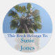 Palm Trees with a sunny blue sky Available as a round sticker bookplate