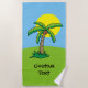 Cartoon illustration of a palm tree. Custom background colour. Custom text.