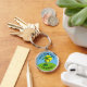 Cartoon illustration of a palm tree. Custom background colour. Two custom text fields on circle.