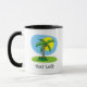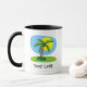 Cartoon illustration of a palm tree. Custom text on both sides.