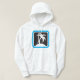 A palm tree icon with a black background and blue frame. This design looks really effective on this Mens Hoodie