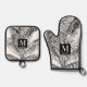 Palm Tree Leaves Black & White Abstract Monogram Oven Mitt & Pot Holder Set