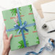Palm tree Merry Christmas green gift wrapping paper. for holidays like Christmas, New Year, birthday, celebrations.
