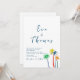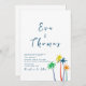 Simple, elegant, minimalist, unique, tropical summer beach wedding invitation with trendy modern handwritten script and colourful palm trees.