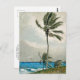 A fine art postcard with the painting by the American artist Winslow Homer (1836-1910), Palm Tree, Nassau (1898). A landscape of tall palm trees blowing in stormy conditions in the Bahamas with a cloudy sky and blue water.