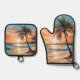 Palm Tree On Tropical Beach At Sunset Oven Mitt & Pot Holder Set