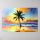 Palm Tree Painting Gracing the Beach at Sunset Poster