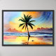 Capture the serene beauty of a palm tree in a captivating painting. This artwork portrays the elegance of a lone palm tree against the backdrop of a stunning beach sunset. As waves gently kiss the sandy shore, the sea and wet sand create a tranquil atmosphere. The scene exudes a sense of peaceful solitude, inviting you to bask in the beauty of nature's calm embrace.