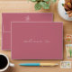 Palm leaf pattern with pink and green colour palette on inside with address on front and white palm tree illustration on flap. Address templates on back flap. Front features "deliver to" script