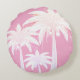 Palm Tree Pink White Tropical Summer Beach House Round Cushion