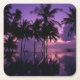 This photo features a row of palm trees reflections on a tropical beach at Sunrise.