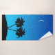 Towel set in a black silhouette of palm trees on a tropical island, against an evening blue gradient background with stars and crescent moon