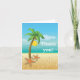 Palm tree & starfish tropical beach destination wedding Thank You note card, featuring a tropical scenery: a palm tree with coconut on a sandy beach with starfish, blue sea/ocean water and the sky with the sun and clouds. Great for a summer, tropical, beach wedding. Blue, green, yellow, brown.