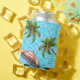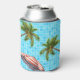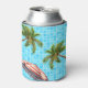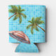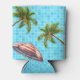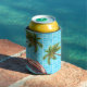 A fun summer design with this azure - light blue patio tile background and palm trees and a sun umbrella.