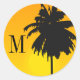 Customisable Wedding Favour Labels with Palm Tree Sunset and monogram. Customise with your initial or text