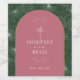 Palm leaf pattern background with line art illustration of palm tree, white text and pink and green colour scheme.
