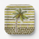 Chic tropical palm tree on stripes and animal print spots square party paper plates. MATCHING items in our collection.