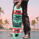 Palm Tree Turtle Silhouette Red Green Initial Skateboard