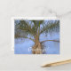Greetings is written in white text.  Pretty close-up looking towards top of tropical palm tree with fronds spread out against a blue sky as evening was approaching.  Picture taken at Point Pleasant Beach Boardwalk,  Original Photography by TamiraZDesigns.