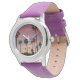 The watch looks exactly as depicted. I was especially pleased with the watch band, which is a nice quality, supple leather. I point this out because an option, which was sold out, was with a multi-colored but clearly plastic band. This is the better choice, in my view.