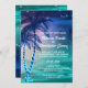Looking for romantic tropical night palm tree wedding invitations? Here is a unique palm tree wedding invitation template that is unique and beautiful in design that you can easily personalise. This midnight blue, teal, and peach watercolor design depicts 2 intertwining palm trees that are festively wrapped in a string of lights with twinkling stars in the night sky. Category: blue and green tropical wedding invitations and templates; tropical palm tree wedding invitations; tropical wedding ideas. Colour theme: dark blue, sapphire blue, teal green, peach and pink.