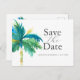 Celebrate your special day in style with these custom palm tree postcards! Featuring a vibrant watercolor palm tree in stunning shades of turquoise, blue, and green, this design brings a fun and tropical vibe to your wedding announcements.