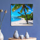 Palm Tree White Sand Hawaii Tropical Beach Photo Square Wall Clock